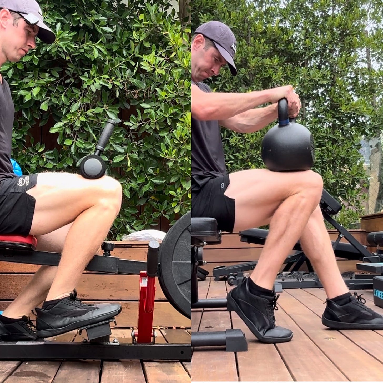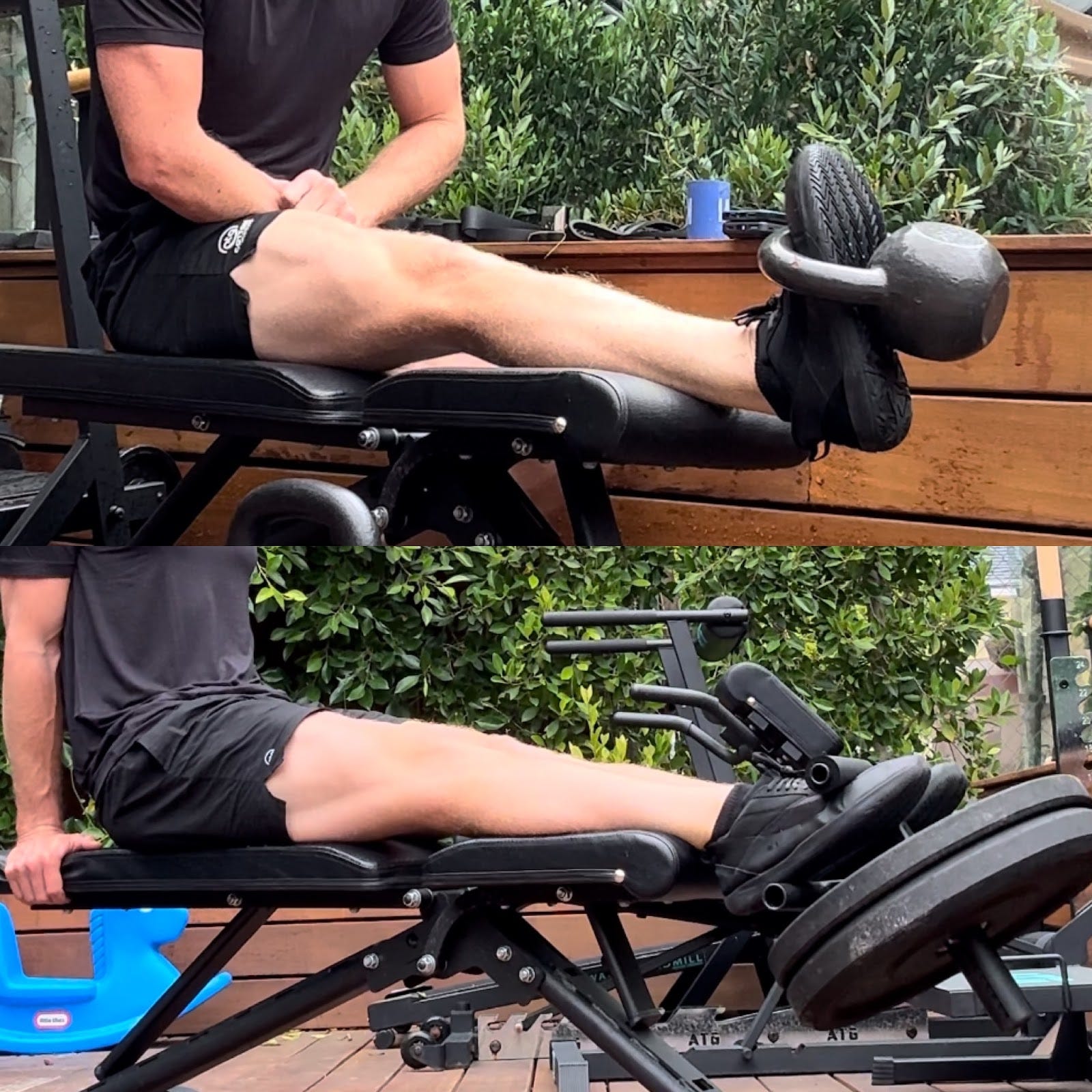 Note: Machines start out with some inherent load, whereas your leg alone starts out much easier. This makes the free weight version advantageous for rebuilding from very low levels! And long term, machines challenge elite strength.